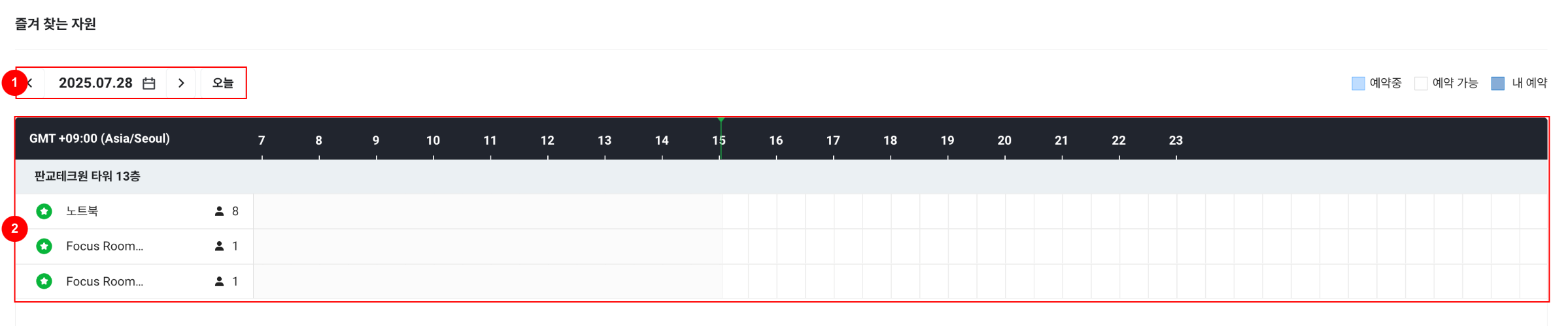 즐겨 찾는 자원의 시간대별 예약 현황 표시