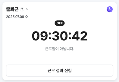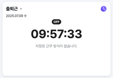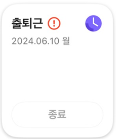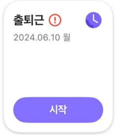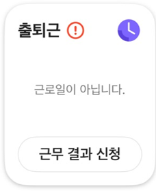 출퇴근 카드는 상황에 따라 다르게 표시됩니다. 각 상황에 따른 출퇴근 체크 화면은 다음과 같습니다.