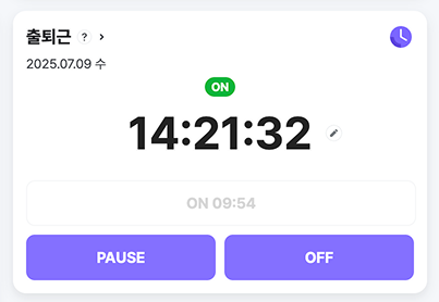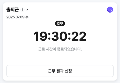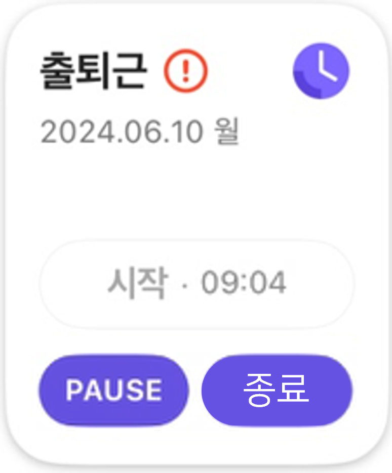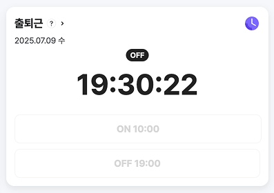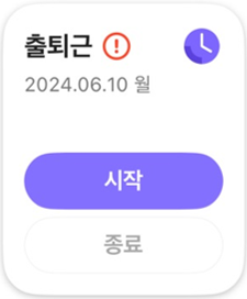 - 홈의 출퇴근 위젯에서 'OFF' 버튼을 클릭합니다.