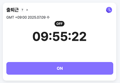 - 출퇴근 위젯에서 'ON' 버튼을 클릭합니다.
