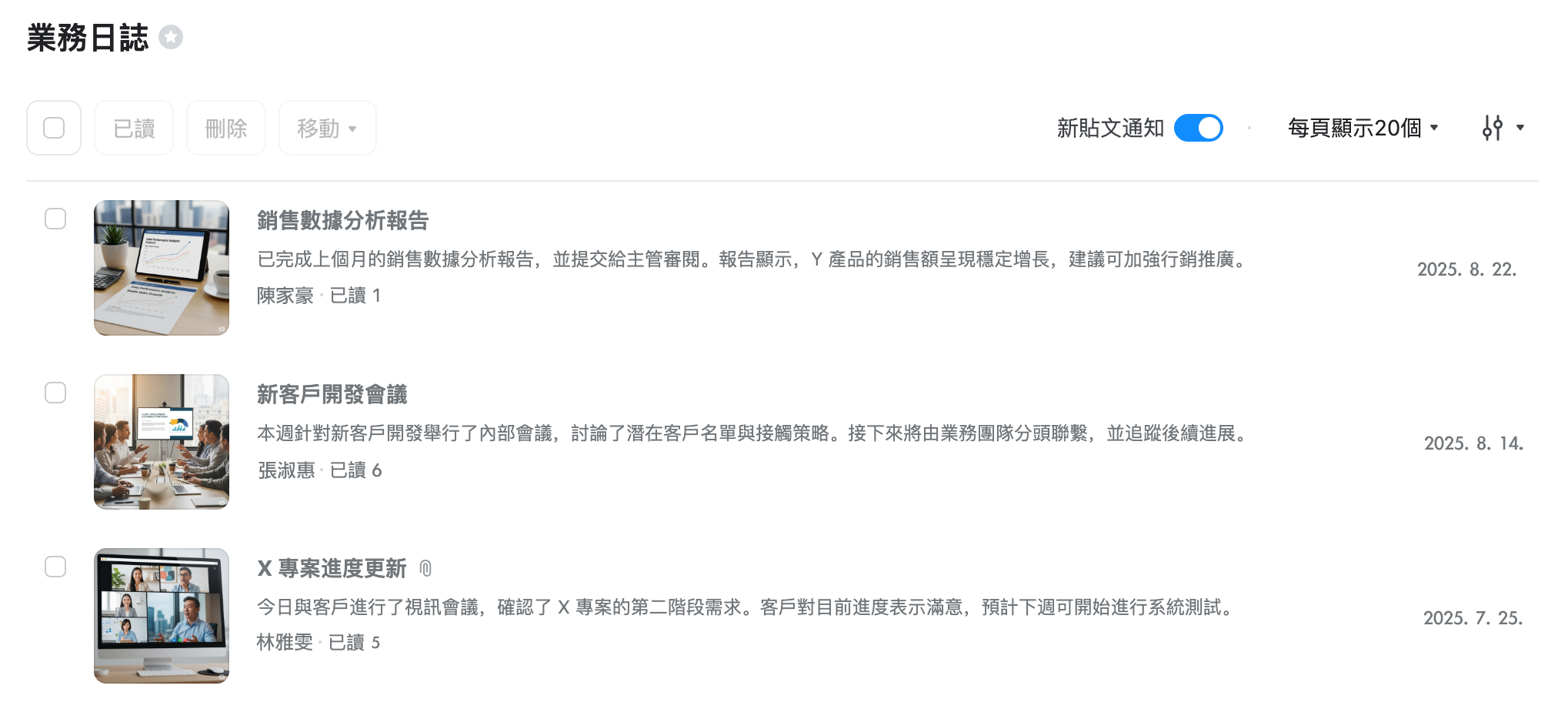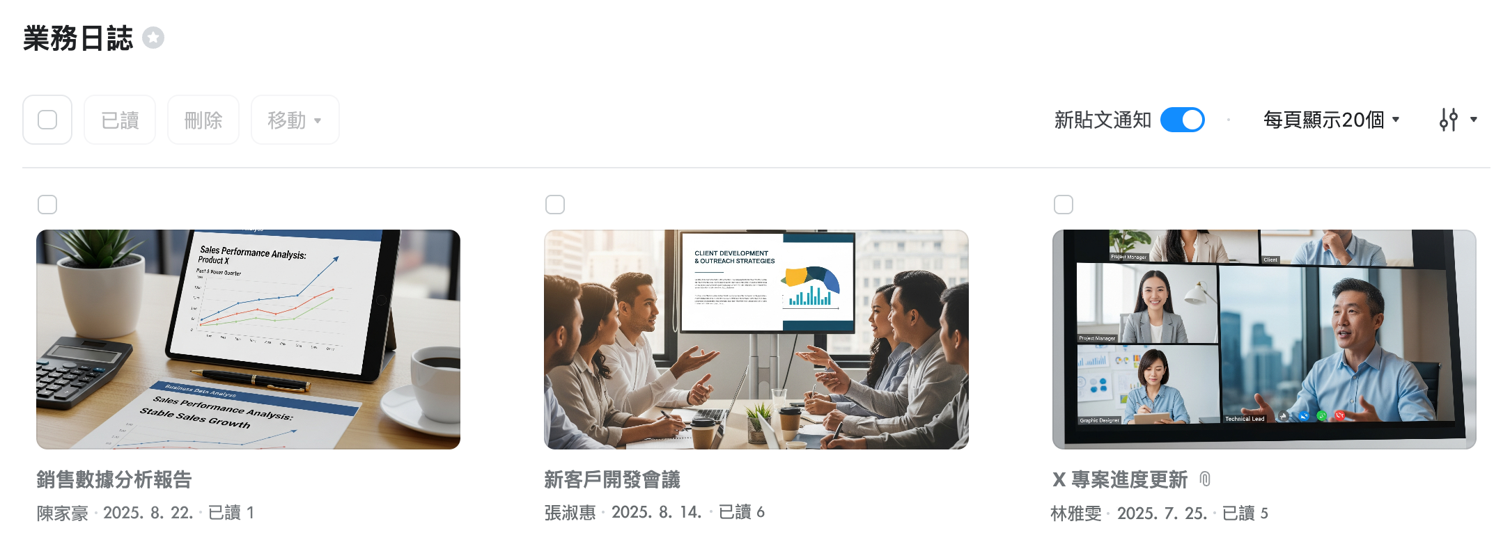 佈告欄是公司員工可登錄貼文並與其他員工分享的空間。