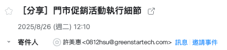 - 打開郵件並點選「收件者」下方的「邀請事件」。