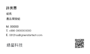 姓名、多國語言姓名、職稱、代表部門、公司標誌或公司名稱、電子郵件地址、手機號碼、新增為聊天對象的QR碼 |